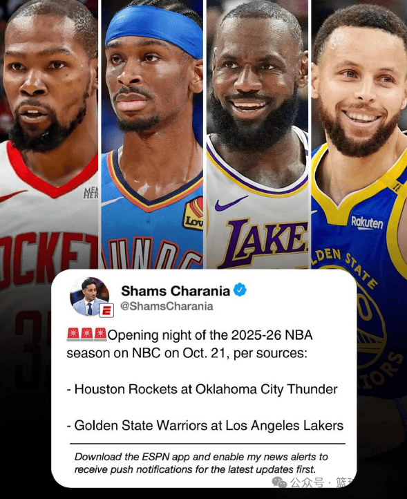 今天一大早名记Shams报道了新赛季常规赛揭幕战和圣诞大战的赛程,这也是NBA一年中最盛大的两个日子。
