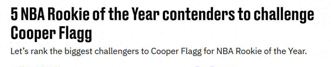 为了扭转之前的D级评分,杨瀚森凭借出色表现赢得了美国媒体的支持!美国媒体公布了五位新秀候选人名单,其中包括杨瀚森和其他四位新星,他们将与备受瞩目的“美国之子”弗拉格角逐本赛季最佳新秀奖。